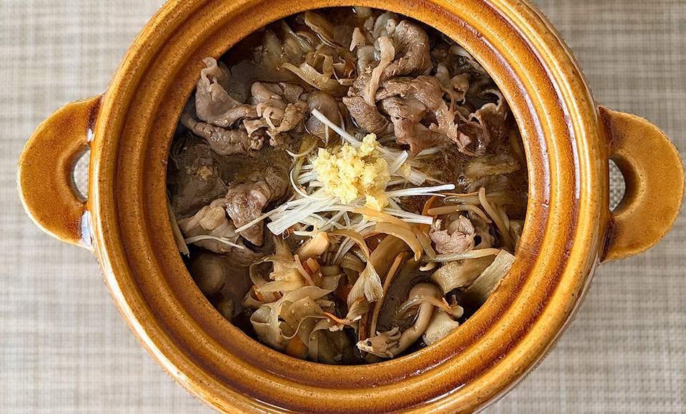 ピーラーで薄切りにしたごぼうの香りと、牛肉の旨味を引き出したシンプルな味噌鍋。素材の持ち味を楽しむ、冬らしい一品です。