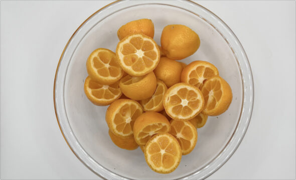 - 金柑は縦半分に切り、竹串で種を除く。