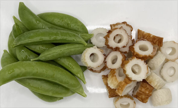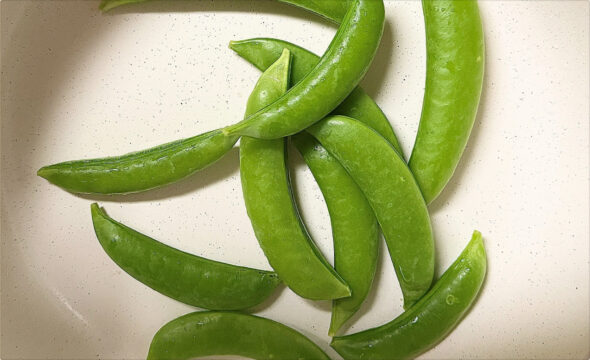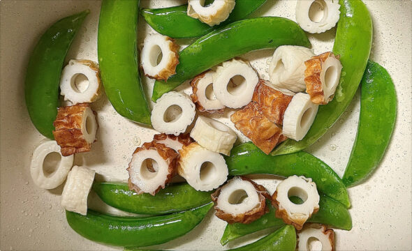 スナップエンドウとちくわの磯辺チーズ炒め