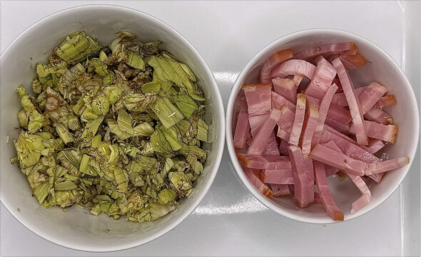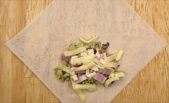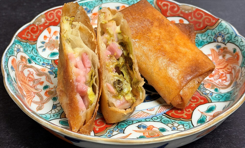 ふきのとうとベーコンのマスタードチーズ春巻き